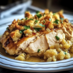 This 4-Ingredient Slow Cooker Chicken with Stuffing is a simple, delicious, and comforting meal that requires minimal prep and delivers maximum flavor. Whether you’re making it for a weeknight dinner or a cozy Sunday meal, it’s sure to be a family favorite. Try it today and enjoy a hearty, stress-free dish!