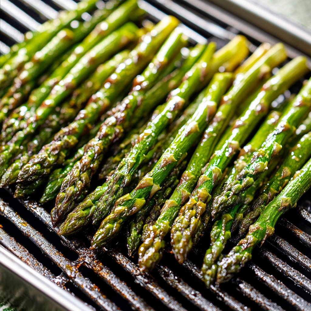 Store leftover asparagus in an airtight container in the refrigerator for up to 3 days. Reheat in the air fryer at 350°F (175°C) for 2–3 minutes to maintain crispness, or microwave for 30–60 seconds (though this may soften the texture).