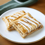 Flaky homemade toaster strudels filled with sweet apple cinnamon filling and topped with a simple icing glaze, perfect for a cozy breakfast or treat.