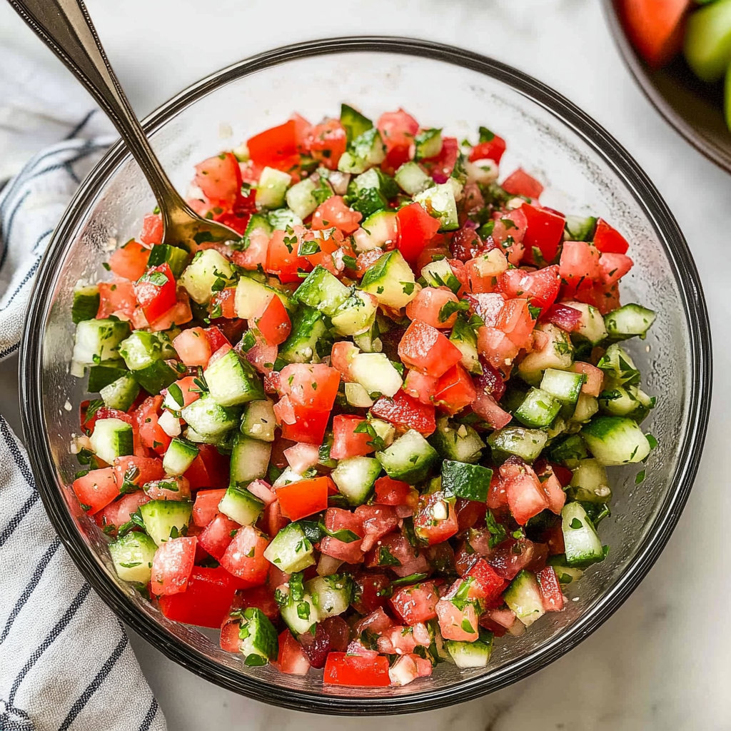 Arabic Salad is a fresh, vibrant mix of finely chopped vegetables like tomatoes, cucumbers, and parsley, dressed with lemon juice and olive oil. It’s a staple in Middle Eastern cuisine, served as a side or mezze.