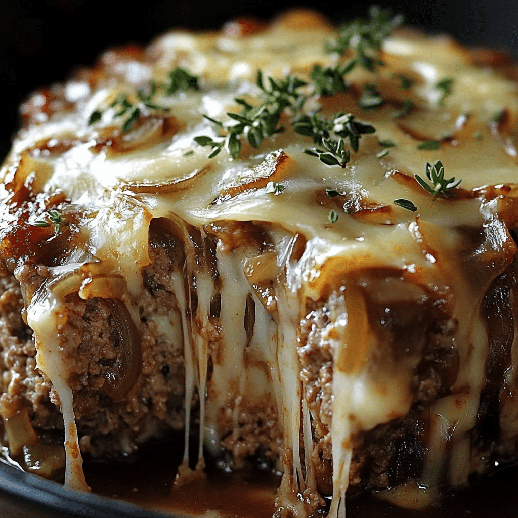 Crockpot French Onion Meatloaf with Melted Swiss Cheese