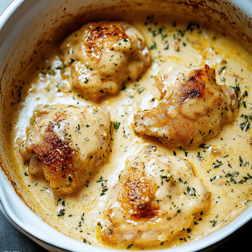 Creamy Oven Baked Chicken Thighs