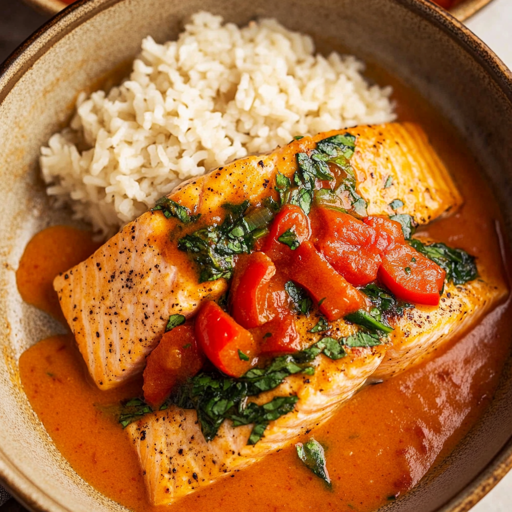 Crispy Salmon with Roasted Red Pepper Sauce