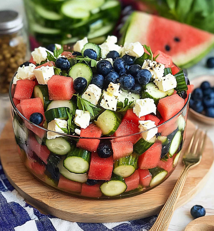 Watermelon Feta Salad with Cucumber and Blueberries