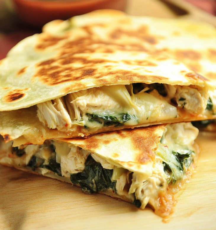 Spinach Artichoke and Chicken Quesadilla