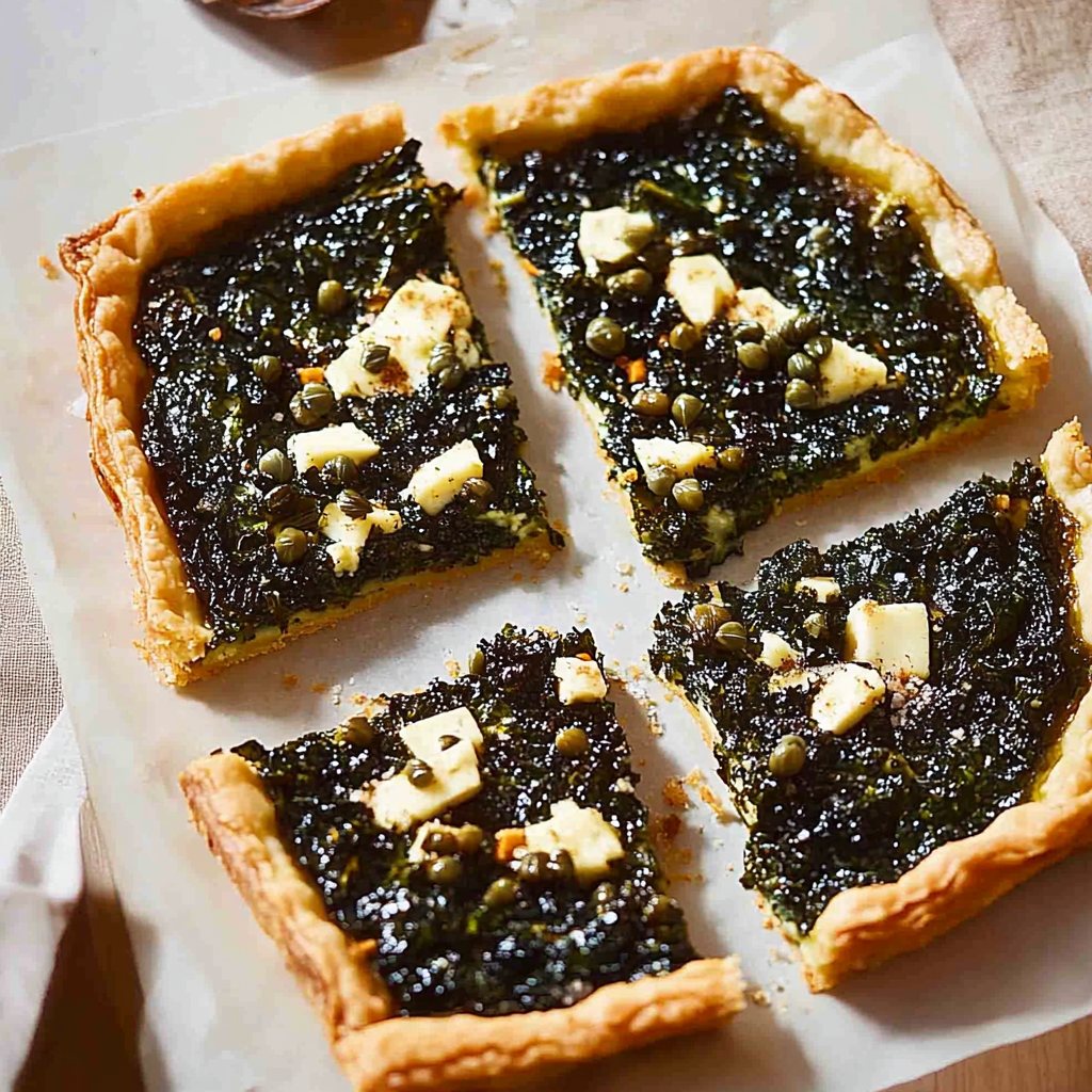 Creamed Kale Tart with Goat Cheese and Crispy Capers