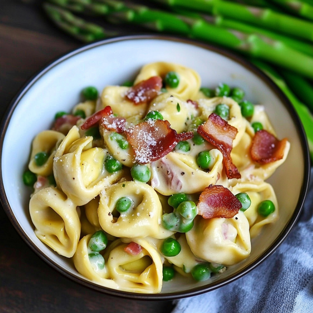 Creamy Tortellini with Peas, Asparagus, and Bacon