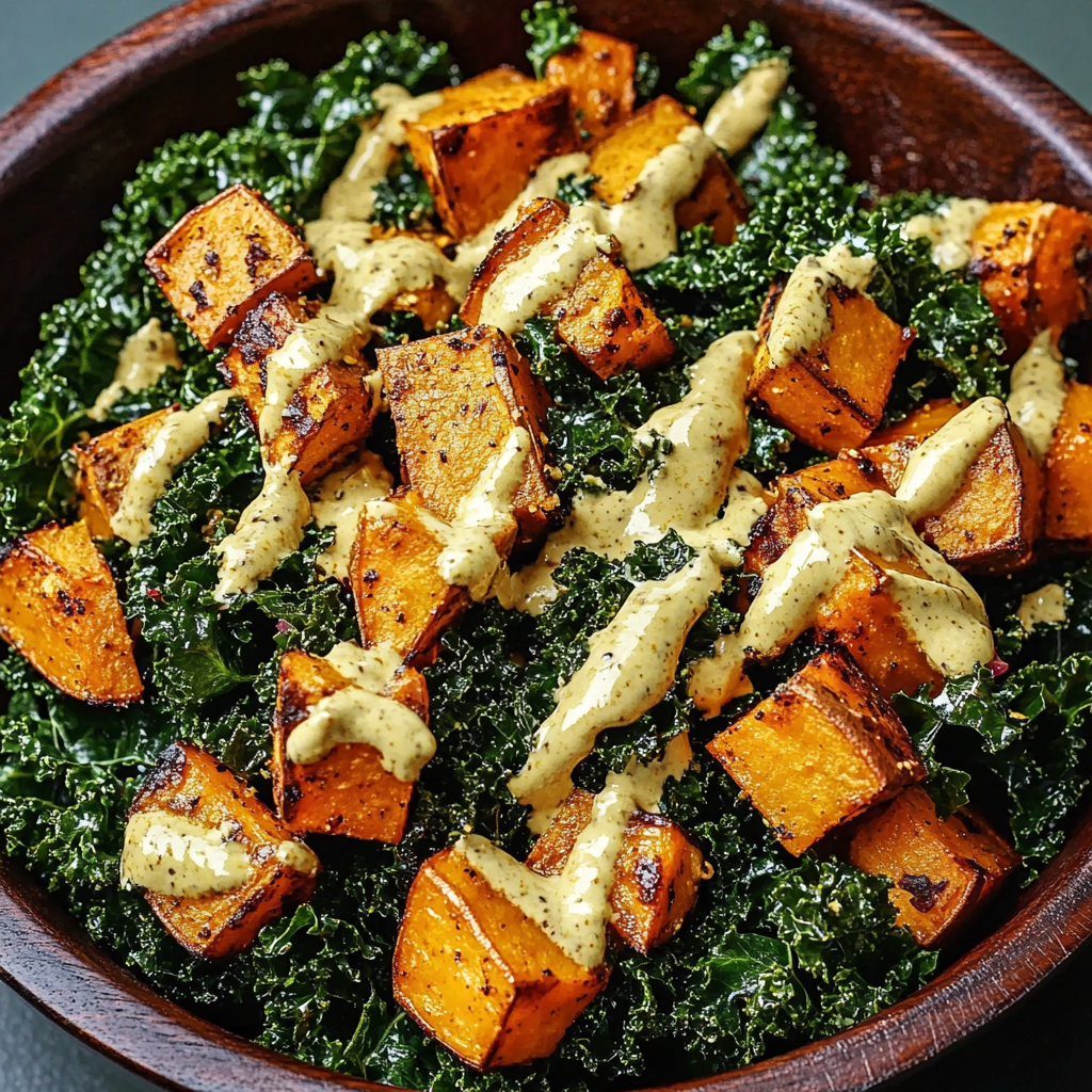 Sweet Potato Kale Salad with Creamy Honey Mustard Dressing