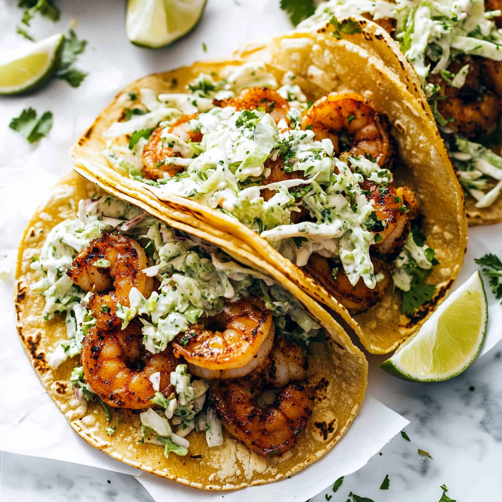 Spicy Shrimp Tacos with Garlic Cilantro Lime Slaw
