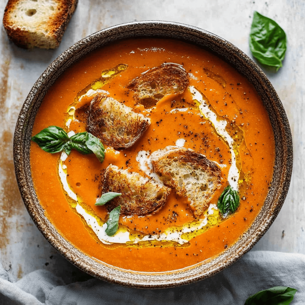 Roasted Tomato Soup with Crispy Gruyère Toasts