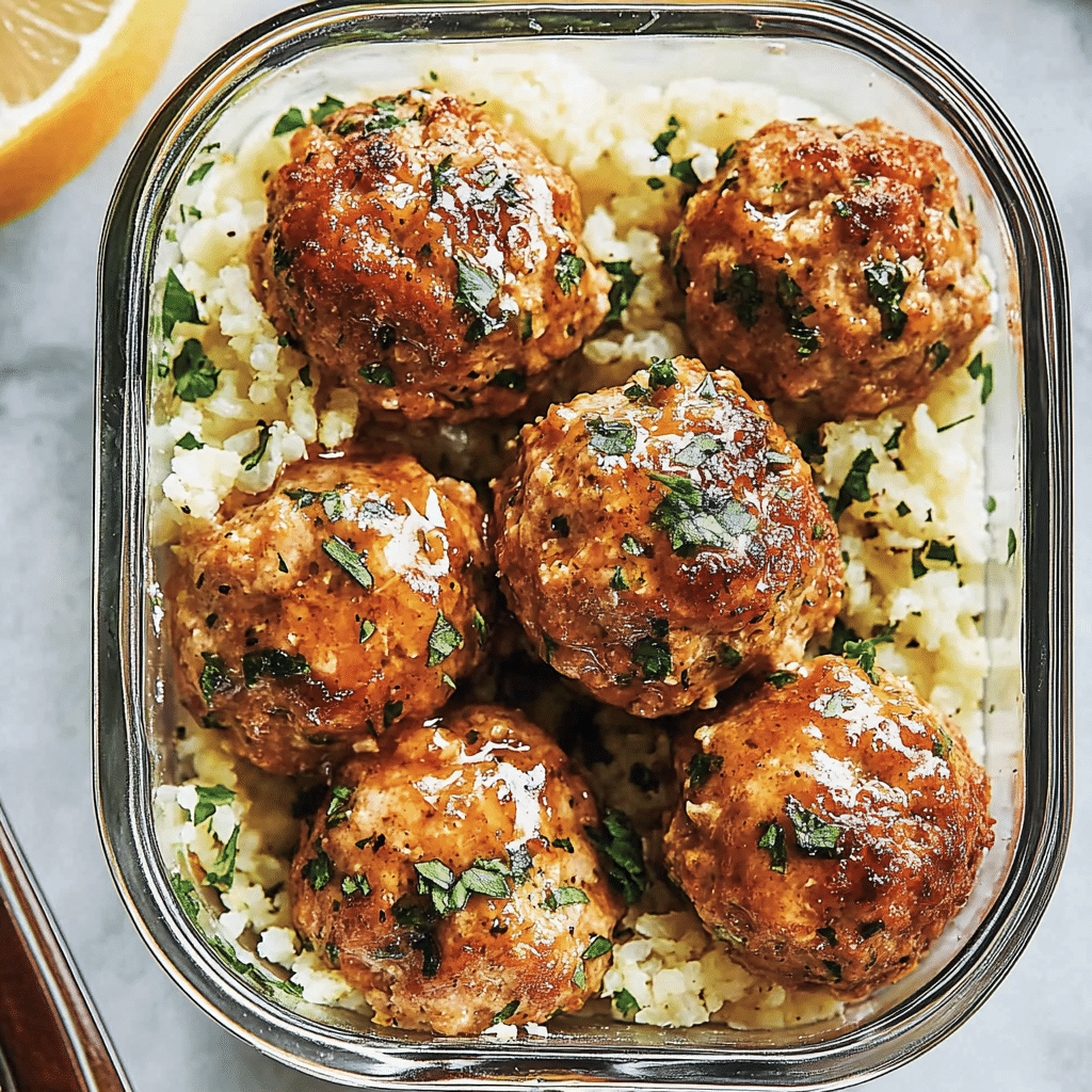 Garlic Butter Chicken Meatballs with Cauliflower Rice