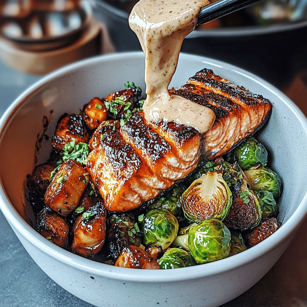 Teriyaki Salmon Bowls with Crispy Brussels Sprouts