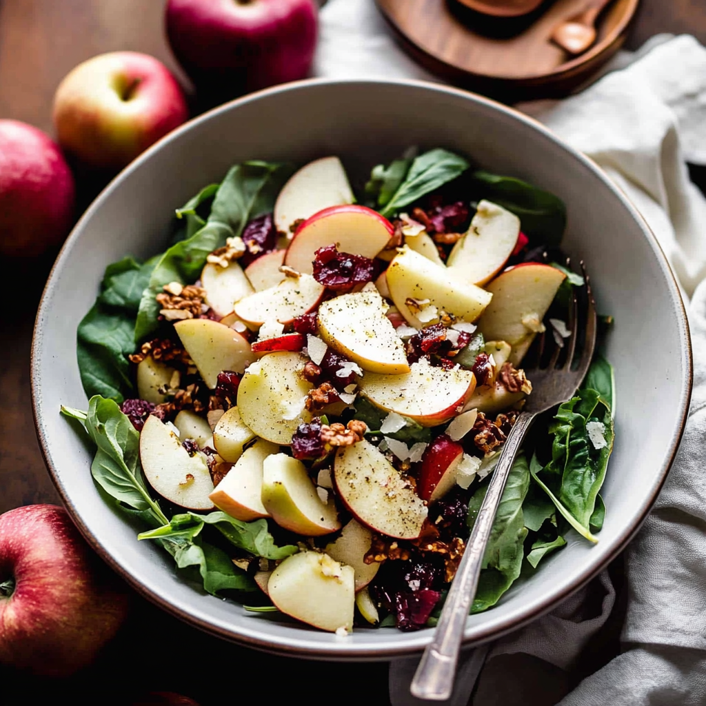 This Autumn Apple Salad is a fresh, crisp, and colorful dish packed with seasonal ingredients like apples, nuts, and greens, tossed in a tangy vinaigrette. Perfect as a light lunch or a festive side.