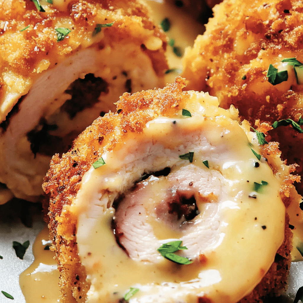 Baked Chicken Cordon Bleu is a delicious, lighter version of the classic dish. It features juicy chicken breasts stuffed with ham and Swiss cheese, coated in a crispy breadcrumb crust, and baked to golden perfection. This dish is both elegant and comforting, making it perfect for family dinners or special occasions.
