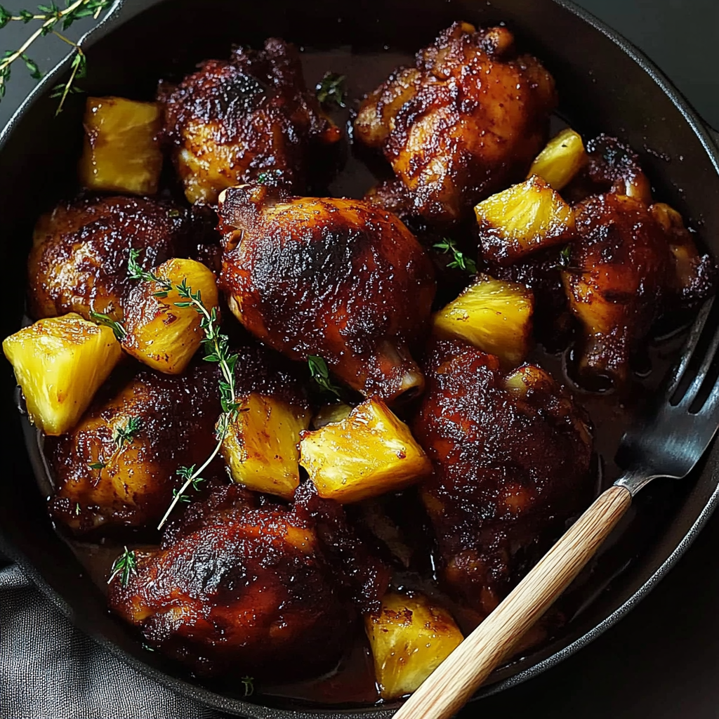 Juicy chicken marinated in spicy-sweet jerk seasoning with pineapple, baked until golden and caramelized.
