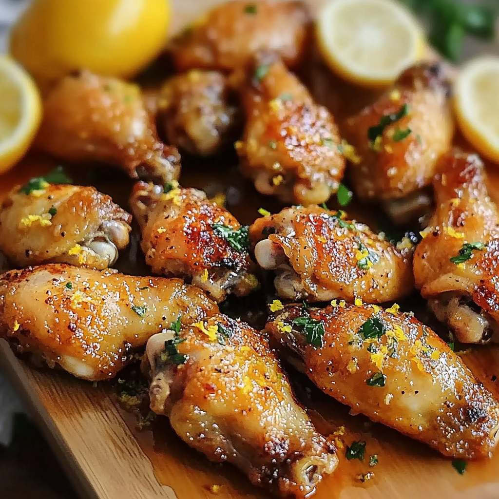 Crispy and flavorful Baked Lemon Garlic Chicken Wings, marinated in a zesty lemon-garlic sauce and baked to golden perfection for a perfect appetizer or main dish.
