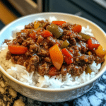 This Beef and Pepper Rice Bowl is a quick, flavorful meal packed with tender beef, vibrant peppers, and a savory sauce. It’s served over a bed of fluffy rice for a wholesome and satisfying dish perfect for weeknights!