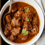 Beef Vindaloo is a spicy and tangy Indian curry dish with Portuguese roots, made with tender beef simmered in a rich, vinegar-based sauce infused with garlic, chili, and warm spices.