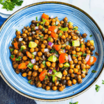 A protein-rich and flavorful black chickpea salad made with fresh vegetables, herbs, and a tangy lemon dressing. Perfect as a healthy snack, side dish, or light meal.