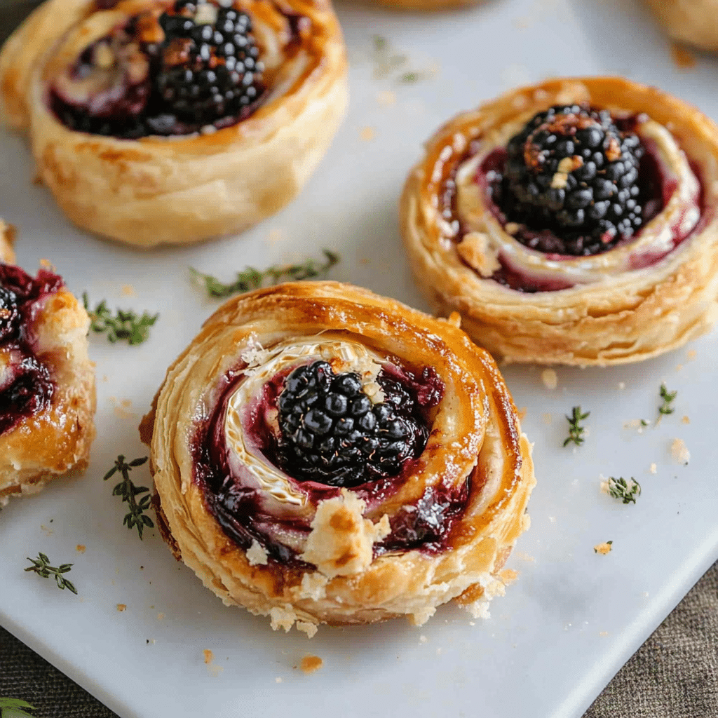 Blackberry Brie Pinwheels are a sweet and savory appetizer that’s both elegant and simple to make. Buttery puff pastry is layered with creamy brie, sweet blackberry preserves, and a touch of fresh thyme, then baked to golden perfection. Perfect for holidays, parties, or anytime you want a fancy snack!