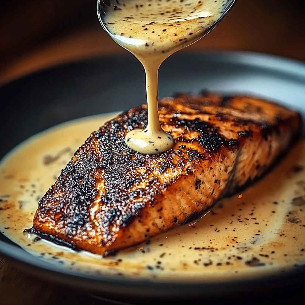 Blackened salmon with creamy Dijon sauce is a bold and satisfying dish that brings together the smoky heat of Cajun-spiced salmon with a rich, tangy mustard cream sauce. It’s quick to prepare and perfect for both weeknight dinners and special occasions.