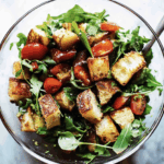 BLT Panzanella is a creative mash-up of two classics: the crispy, savory goodness of a BLT sandwich and the rustic charm of a traditional Italian bread salad. With golden toasted bread cubes, juicy tomatoes, crispy bacon, and fresh greens all tossed in a zesty dressing, this dish is hearty, flavorful, and full of texture. It’s perfect for a summer lunch or a crowd-pleasing side at your next cookout.