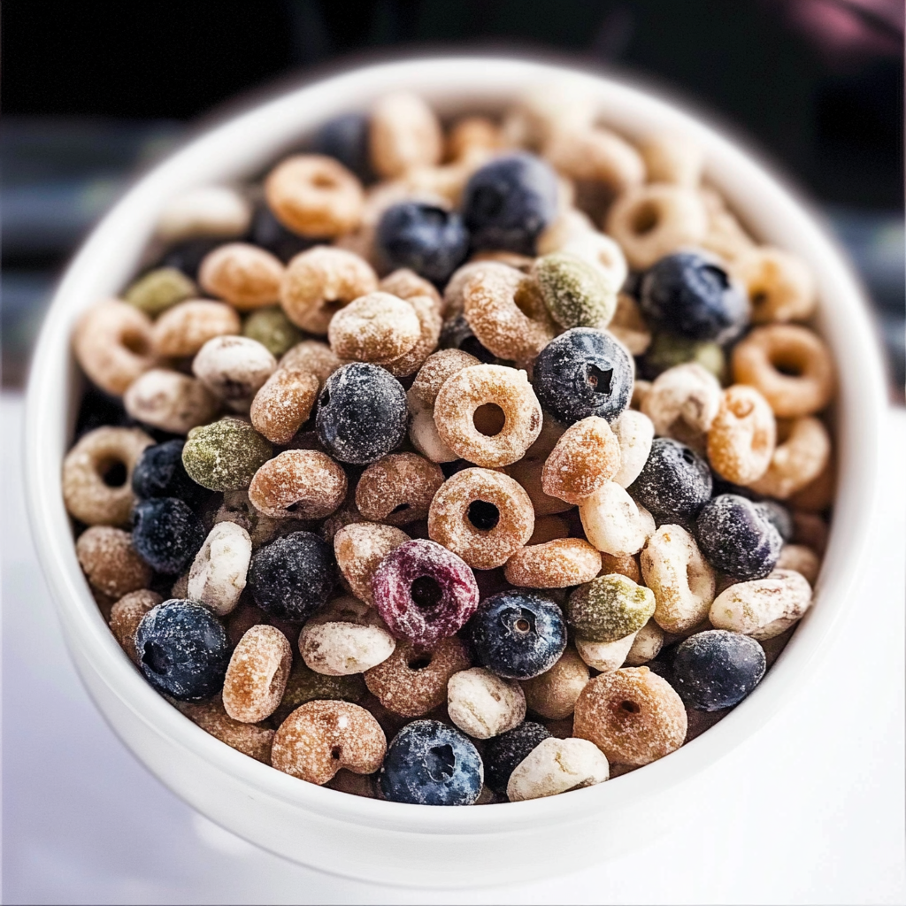 - Blueberry-flavored cereal (e.g., Blueberry Cheerios or similar)
