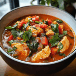Brazilian Fish Stew, also known as Moqueca, is a vibrant, flavorful dish that showcases the rich culinary traditions of Brazil’s coastal regions. This comforting stew features tender chunks of white fish simmered in a fragrant broth of coconut milk, tomatoes, bell peppers, onions, and a touch of lime, creating a perfect balance of savory, spicy, and tangy flavors.