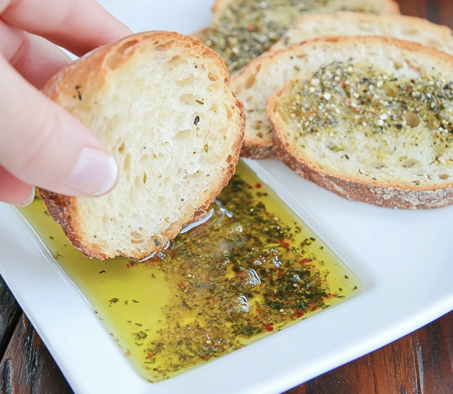 - Assemble the Dipping Oil: Add 1-2 teaspoons of the spice blend to a shallow dish. Pour high-quality extra virgin olive oil over the spices.