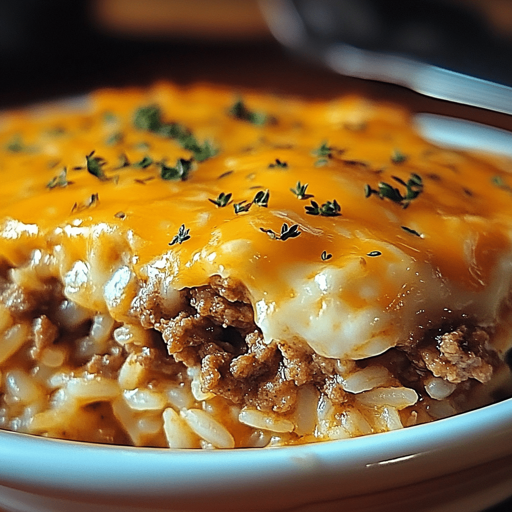 Cheddar-Crusted Ground Beef and Rice Casserole