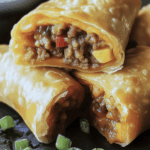 Cheeseburger Egg Rolls are a crispy, savory fusion of classic American cheeseburgers and crunchy egg rolls, perfect as an appetizer or party snack.