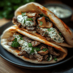 Cheesy Beef and Mushroom Pita Pockets with Tzatziki Sauce are a savory and satisfying handheld meal that fuses Middle Eastern-style flatbread with a hearty, cheesy filling and a cool, tangy Greek-inspired sauce. Perfect for lunch, dinner, or even meal prep, these pita pockets deliver bold flavor in every bite.