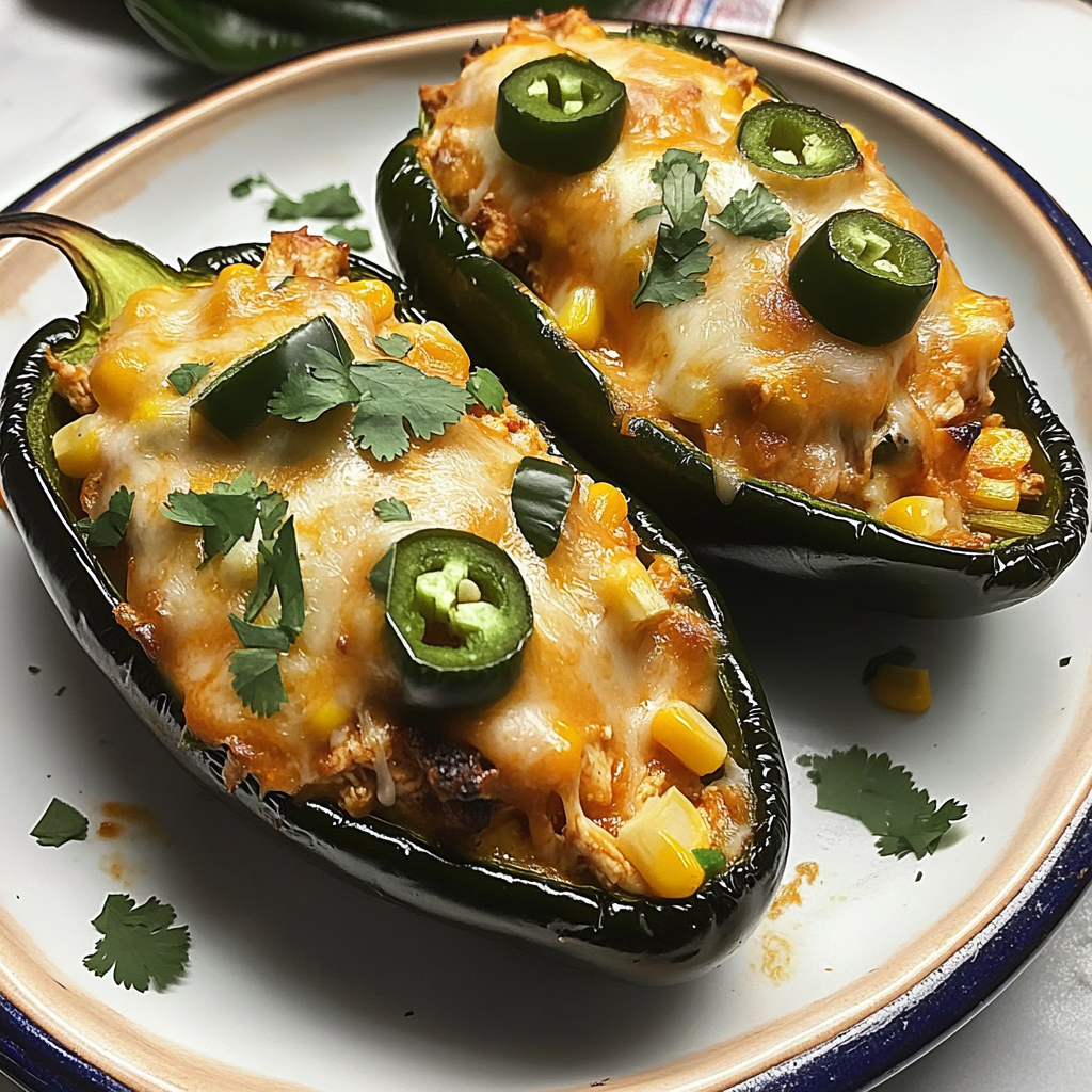 Cheesy Chicken and Corn Stuffed Poblano Peppers are a flavorful and satisfying dish that combines tender chicken, sweet corn, and melty cheese all packed into smoky roasted poblano peppers. This easy-to-make recipe offers the perfect balance of heat, creaminess, and freshness, making it a fantastic choice for weeknight dinners or entertaining guests.