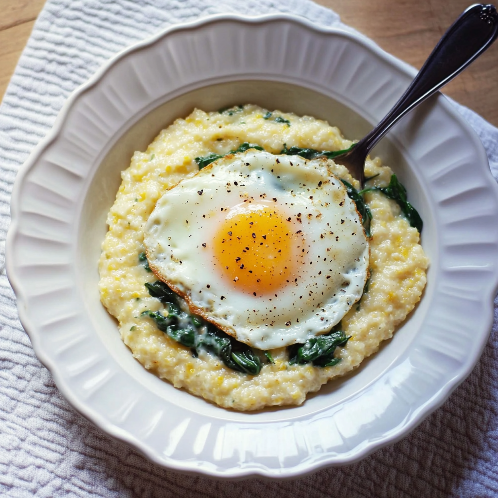 Cheesy Grits with Spinach and Fried Eggs is a comforting, satisfying breakfast or brunch dish that balances creamy, cheesy grits with nutrient-rich sautéed spinach and perfectly fried eggs. It’s an easy, nourishing meal that feels both indulgent and wholesome.