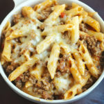 Cheesy Ground Beef Pasta Skillet is a quick, hearty one-pan meal loaded with tender pasta, seasoned ground beef, rich tomato sauce, and gooey melted cheese. It’s the kind of comforting, family-friendly dinner that comes together in 30 minutes and disappears just as fast.