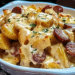 This dish features diced potatoes and sliced smoked sausage baked together in a rich, cheesy ranch sauce. The combination of smoky sausage, tender potatoes, and creamy cheese makes it a family favorite that’s both easy to prepare and deeply satisfying.