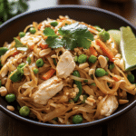 Chicken Pad Thai is a classic Thai stir-fry dish featuring tender chicken, rice noodles, scrambled eggs, and a flavorful sweet, tangy, and slightly spicy sauce. Topped with crunchy peanuts and fresh lime, this easy homemade version brings restaurant-quality flavors to your kitchen in just 30 minutes!