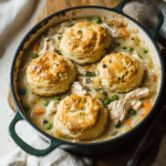 This Chicken Pot Pie with Biscuits is the ultimate comfort food! It features a rich, creamy chicken and vegetable filling, topped with buttery, flaky biscuits. Perfect for a cozy family dinner.