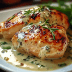 This dish features juicy, pan-seared chicken breasts smothered in a rich and creamy Boursin cheese sauce infused with garlic and fine herbs. It’s an easy yet elegant meal that pairs beautifully with mashed potatoes, pasta, or roasted vegetables.