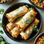 These Chili Southwest Eggrolls are a flavor-packed appetizer loaded with bold Tex-Mex ingredients like black beans, corn, diced green chiles, chicken, and melted cheese, all wrapped in a crispy golden eggroll shell. They’re the perfect fusion of Mexican and American flavors in one irresistible bite.