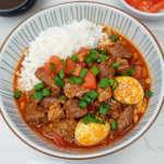 Chinese Tomato Beef Egg is a flavorful and comforting dish that brings together tender beef, juicy tomatoes, and soft scrambled eggs in a savory, slightly sweet sauce. This quick and easy dish is a staple in many Chinese households and pairs perfectly with steamed rice.