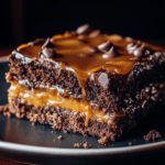 A rich and gooey dessert made by layering chocolate cake mix, caramel, and butter—effortless to prepare and perfect for chocolate lovers.