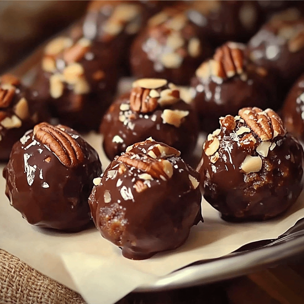 Place the chocolate pecan pie balls onto a parchment-lined baking sheet and refrigerate for at least an hour to let them firm up. - Serve and Enjoy:
