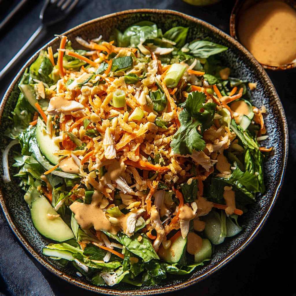 Chopped Thai Crunch Chicken Salad is a fresh, flavor-packed dish that combines bold Thai-inspired ingredients with the crunch of chopped vegetables and creamy peanut dressing. It’s easy to make, perfect for meal prep, and endlessly customizable. Whether you’re looking for a satisfying lunch or a vibrant dinner, this salad brings the crunch, color, and craveable flavor every time.