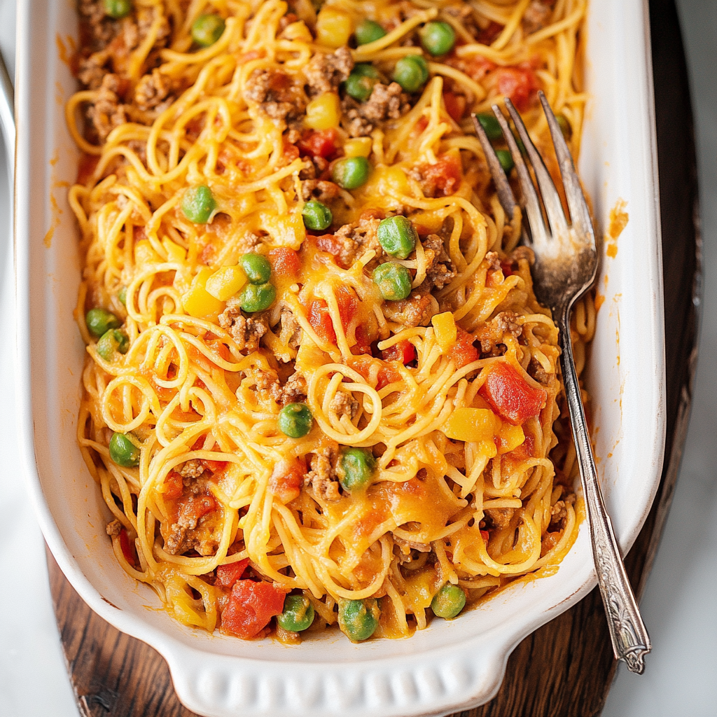 Church Supper Spaghetti is a comforting, crowd-pleasing baked spaghetti casserole made with a rich meat sauce, tender pasta, and melted cheese—ideal for potlucks and family gatherings.