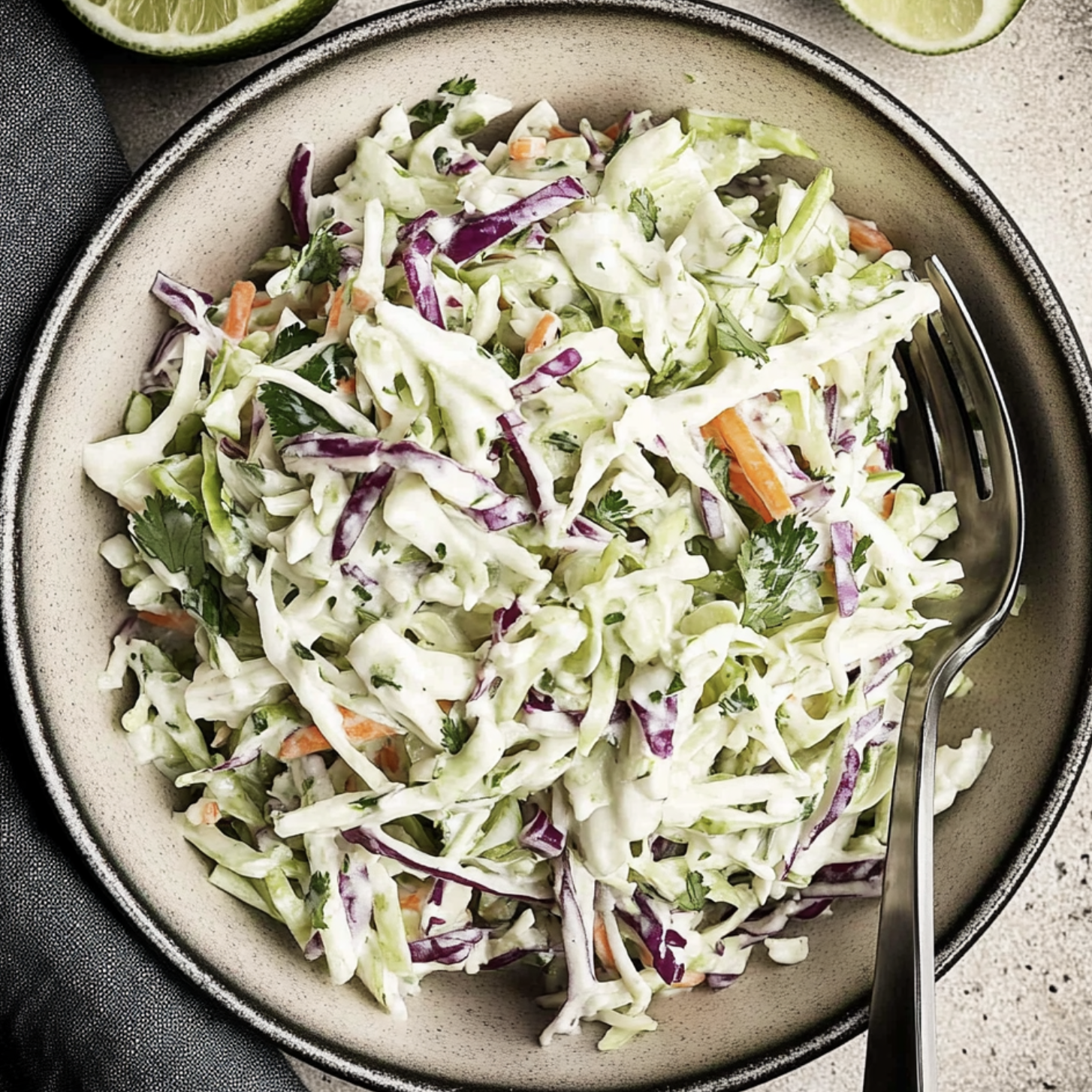A fresh, zesty slaw made with crunchy cabbage, tangy lime juice, and fragrant cilantro, perfect as a side or taco topping.
