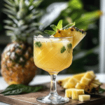 Ce cocktail tropical au jus d’ananas est idéal pour apporter un goût exotique et rafraîchissant à vos apéritifs ou moments de détente. Avec du jus d’ananas, de la crème de coco, et une touche de rhum, il vous transportera immédiatement sous les tropiques.