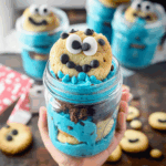 Cookie Monster Cake Jars are whimsical layered desserts inspired by the beloved blue monster, featuring blue vanilla cake, crushed cookies, cookie dough bites, and a swirl of buttercream in individual jars—perfect for parties and kids’ treats.