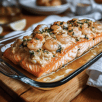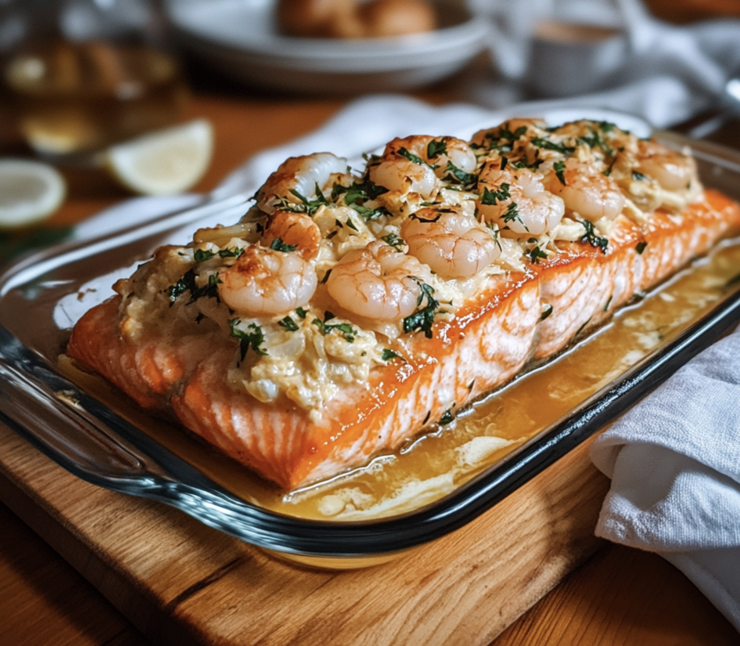 Crab and Shrimp Stuffed Salmon is an elegant seafood dish featuring tender salmon fillets filled with a rich, savory stuffing made of crab, shrimp, cream cheese, and herbs—perfect for special occasions or a gourmet dinner at home.
