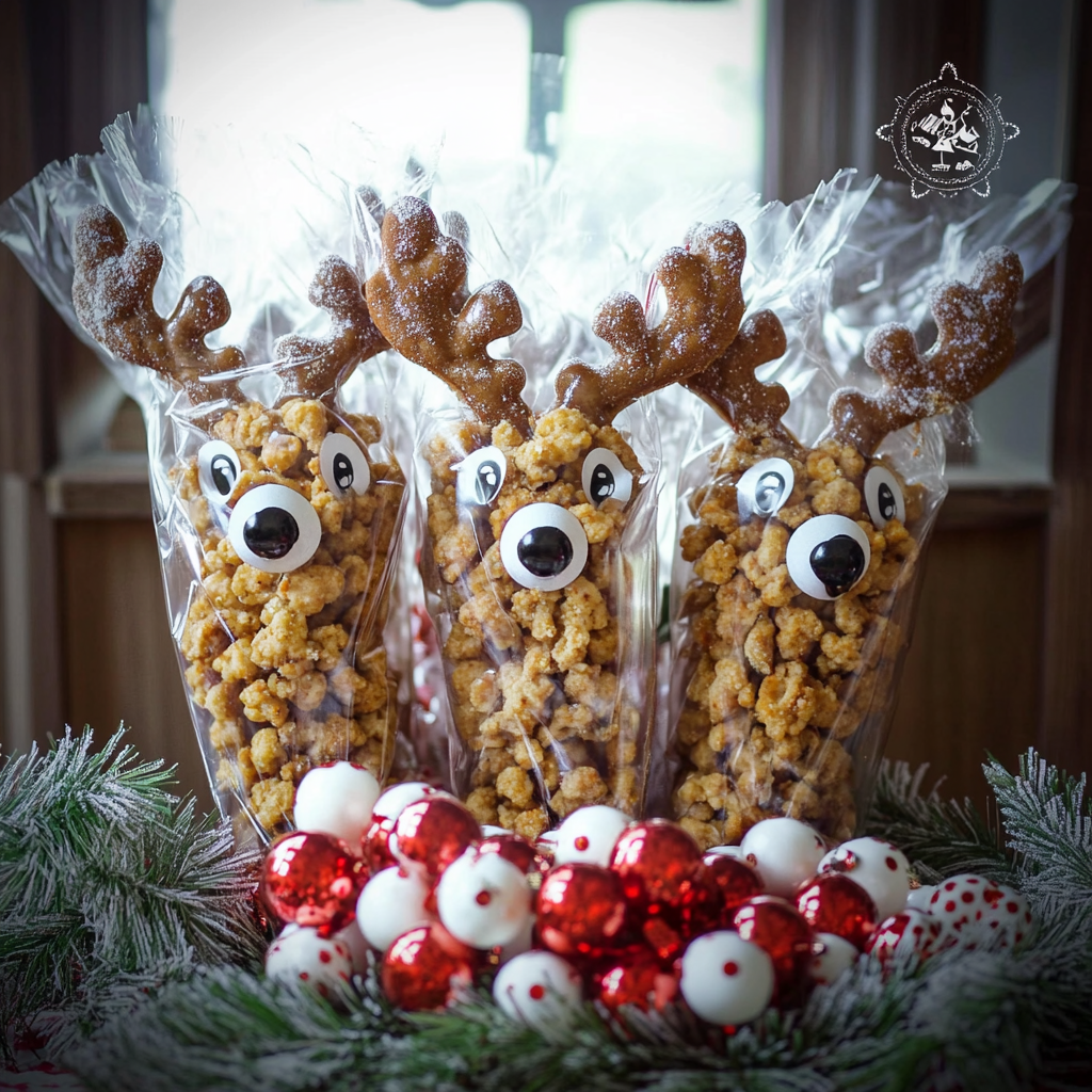 These Cracker Jack Reindeer treats are a fun and easy holiday snack made with caramel popcorn, chocolate, and festive decorations. Perfect for Christmas parties, gift-giving, or a kid-friendly activity!